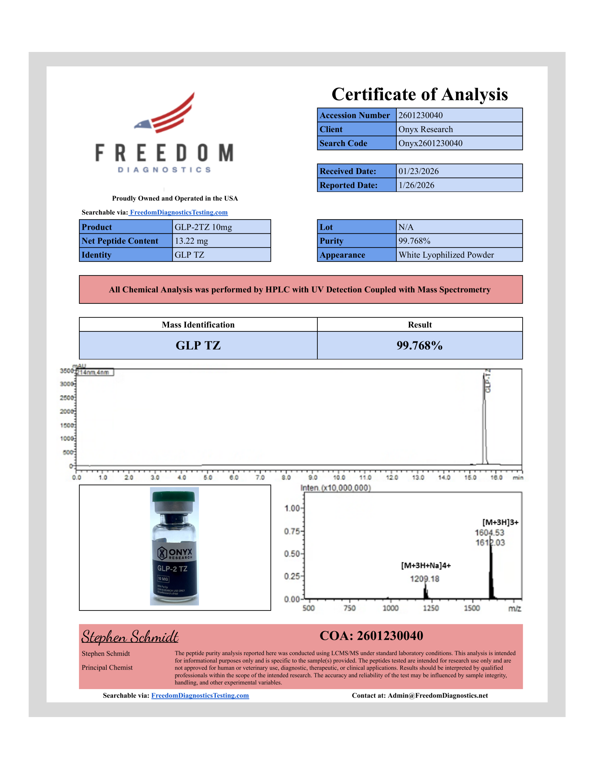 Onyx Research is a chemical supplier. Onyx Research is not a compounding pharmacy or chemical compounding facility as defined under 503A of the Federal Food, Drug, and Cosmetic act. Onyx Research is not an outsourcing facility as defined under 503B of the Federal Food, Drug, and Cosmetic act.